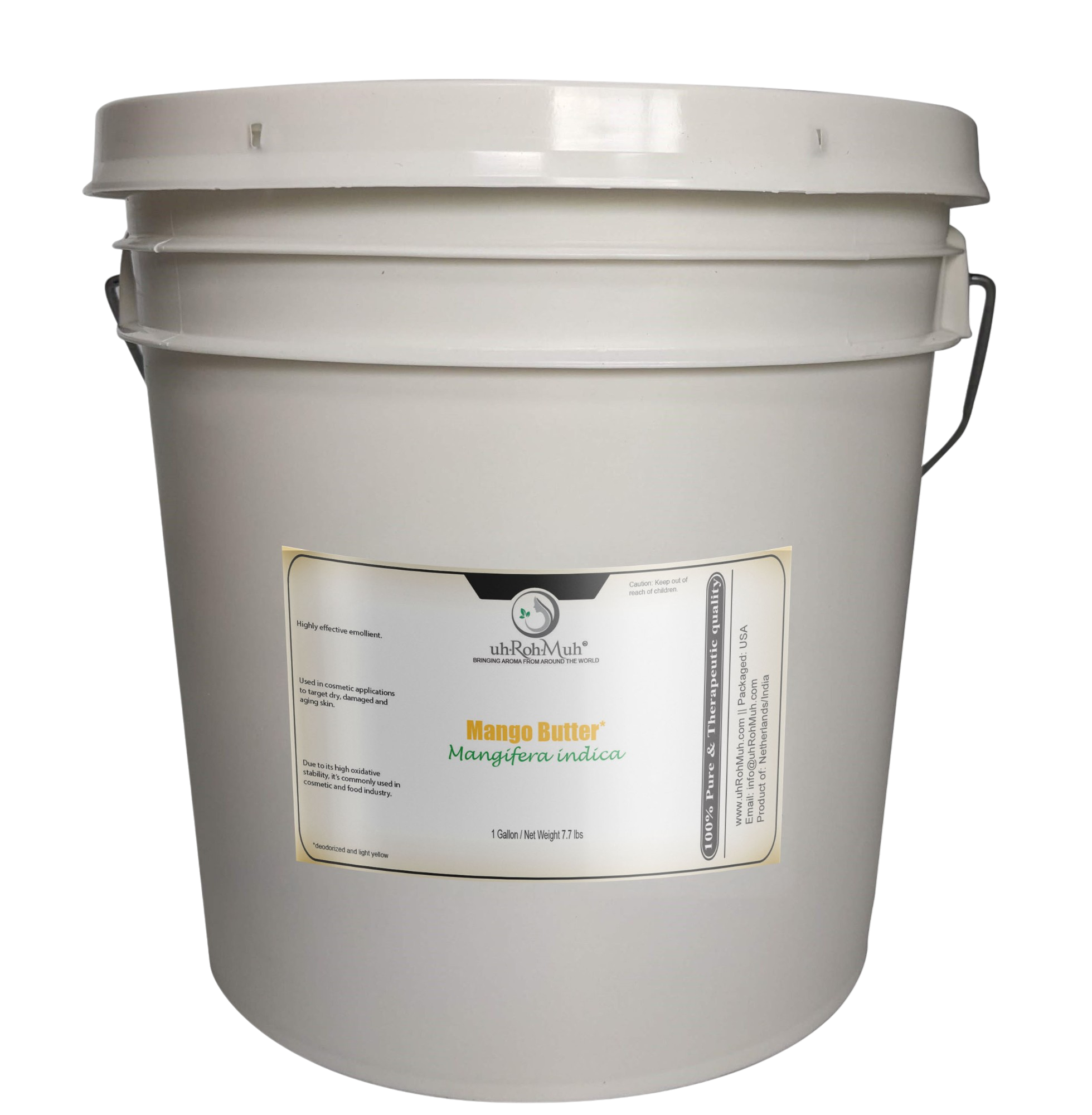Description: Mango butter is a type of body butter made from mango seed. It’s similar to shea and cocoa butter in that it’s light and moisturizing without being greasy. It is used in cosmetic industry to make skin care and natural beauty products. Mango butter is a great source of essential fatty acids, and has beneficial moisturizing properties for lotions and acts as a mild lubricant for the skin. Extracted from kernel of mango fruit. Solid at room temperature, melting point of mango butter is above 170 degrees F.